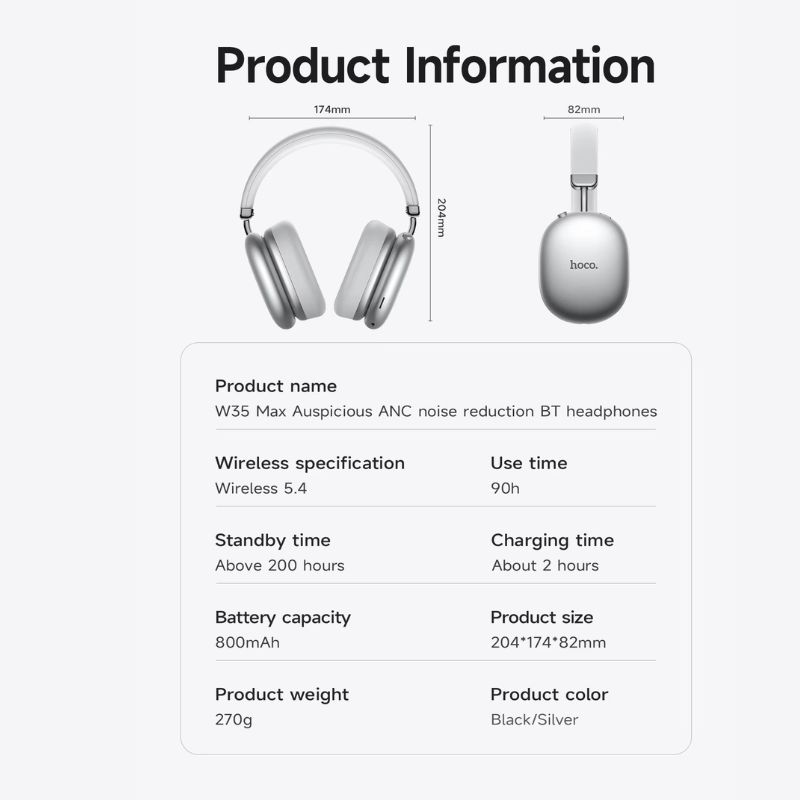 আপনার মিউজিক, গেমিং এবং কলিং অভিজ্ঞতাকে এক নতুন মাত্রায় নিয়ে আসুন Hoco W35 Max Wireless Bluetooth Headset (L1-H9001) এর সাথে।